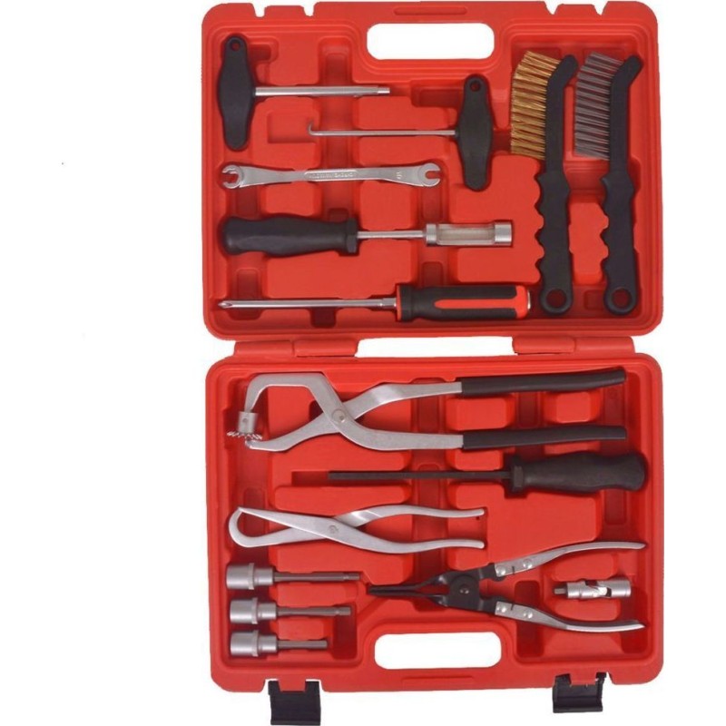 Diese hochwertigen Werkzeuge sind aus robustem Kohlenstoffstahl gefertigt. Das vielseitige und übersichtliche Set wird in einem kompakten Koffer geliefert, der den Transport und die Aufbewahrung erleichtert.