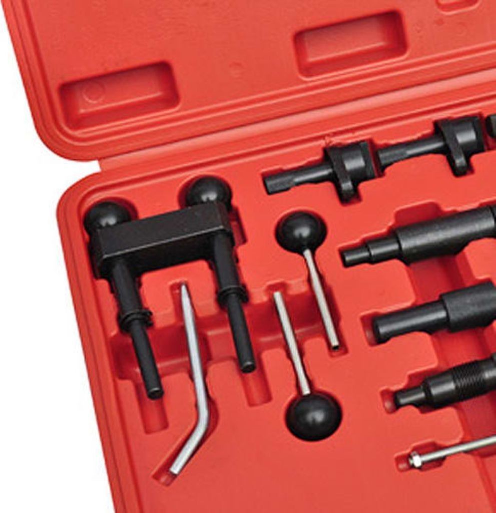 Das für VW- und Audi-Motoren bestimmte Set kann auch bei anderen, ähnlich aufgebauten Motoren wie denen von Ford und Volvo verwendet werden. Schlüsselsatz (SW6) für Spannvorrichtungen bei Vierzylinder-Dieselmotoren wie denen des Volkswagen Golf, Caddy, Sharan und Touran ab 2004. Auch für einige Benzinmotoren geeignet (siehe weitere Spezifikationen).