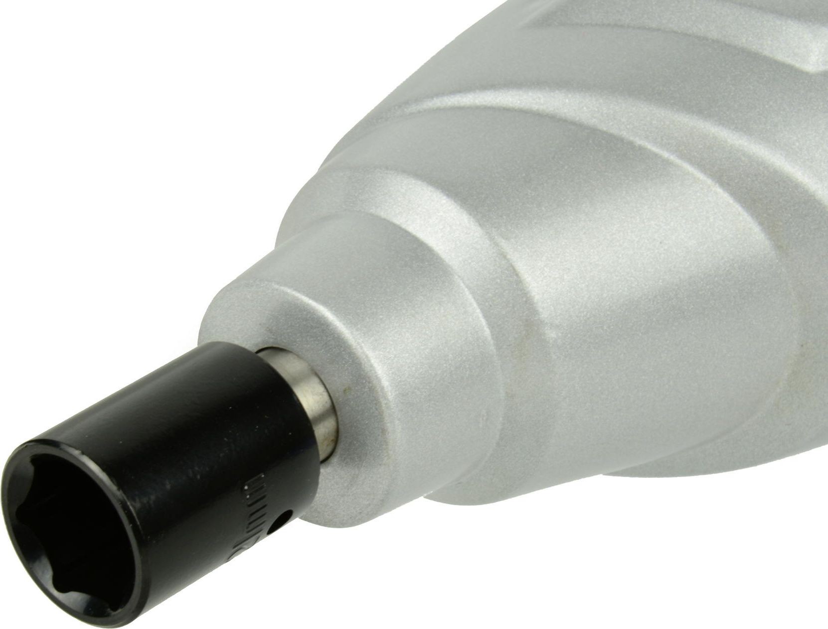 Elektrischer 1/2"-Schlagschrauber mit 1050 W Leistung und LCD-Anzeige, im Set mit CrV-Steckschlüsseleinsätzen 17, 19, 21, 22 mm. Dank des LCD-Displays lässt sich das Drehmoment beim Anziehen im Bereich von 150–350 Nm einstellen, beim Lösen beträgt das Drehmoment 500 Nm. Elektrisch betrieben, benötigt daher keinen Kompressor für den Betrieb. Der Schrauber eignet sich hervorragend für den Einsatz in Kfz-Werkstätten sowie in privaten Garagen. Produktmerkmale: einstellbares Drehmoment, Nennleistung 1050 W, Taste am Griff zur Umschaltung der Drehrichtung (rechts/links), Aufsätze aus hochwertigem CrV-Stahl, Drehzahl 2200 U/min, Schraubenschlüssel geeignet für Aufsätze mit 1/2"-Aufnahme Technische Daten: Nennspannung: 230 V~50 Hz Drehzahl: 2200 U/min Drehmomenteinstellung beim Anziehen: 150–350 Nm Drehmoment beim Lösen: 500 Nm Steckschlüsselaufnahmetyp: 1/2" Drehrichtung: links/rechts Steckschlüsselaufnahmen: 17, 19, 21, 22 mm