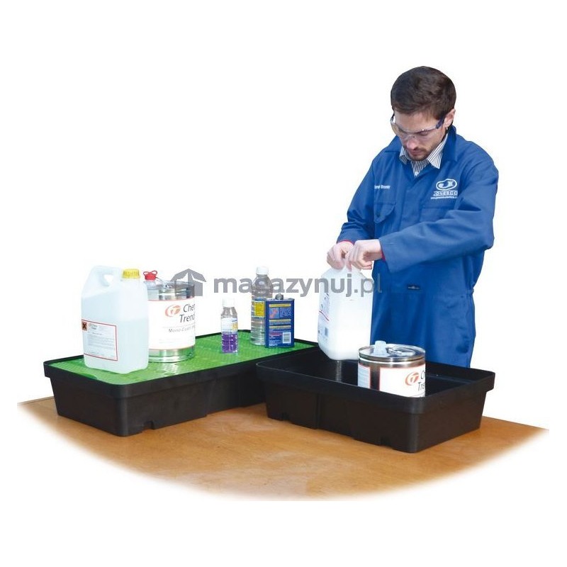 Die Auffangwanne ohne Gitterrost zum Auffangen von auslaufenden Flüssigkeiten besteht aus sehr strapazierfähigem und chemikalienbeständigem Polyethylen, das zu 100 % recycelbar ist. Sie eignet sich hervorragend zur Lagerung von Behältern mit Ölen oder Chemikalien, selbst den aggressivsten. Sie wird zur dauerhaften Auffangung von Leckagen oder als Ort zum Dosieren von Flüssigkeiten aus Behältern verwendet.