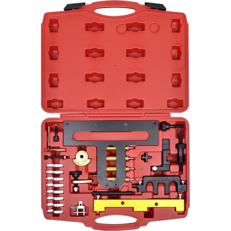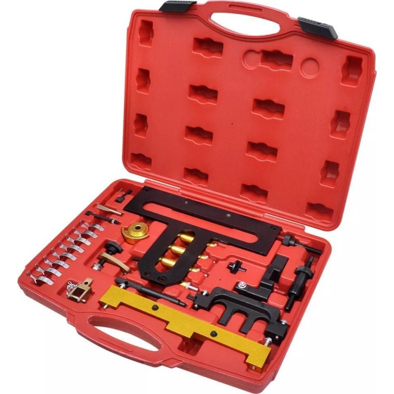 Die Werkzeuge wurden speziell für den Ein- und Ausbau von Nockenwellen und Steuerungsmodulen, die Überprüfung und Einstellung der Ventilsteuerzeiten sowie die Arretierung von Nockenwelle und Kurbelwelle entwickelt und gefertigt. Ein unverzichtbares Werkstattwerkzeug für Profis und Heimwerker.