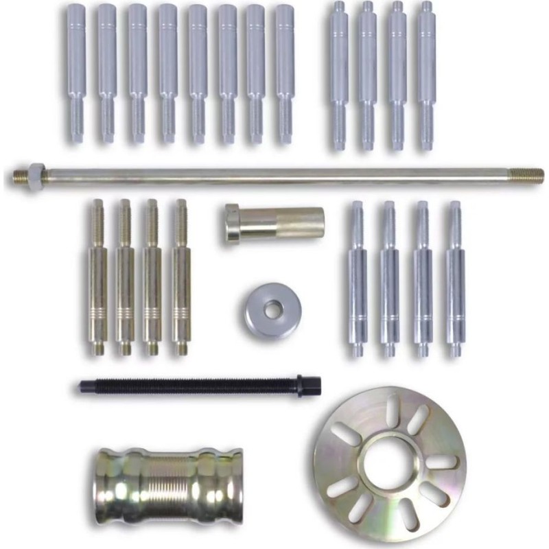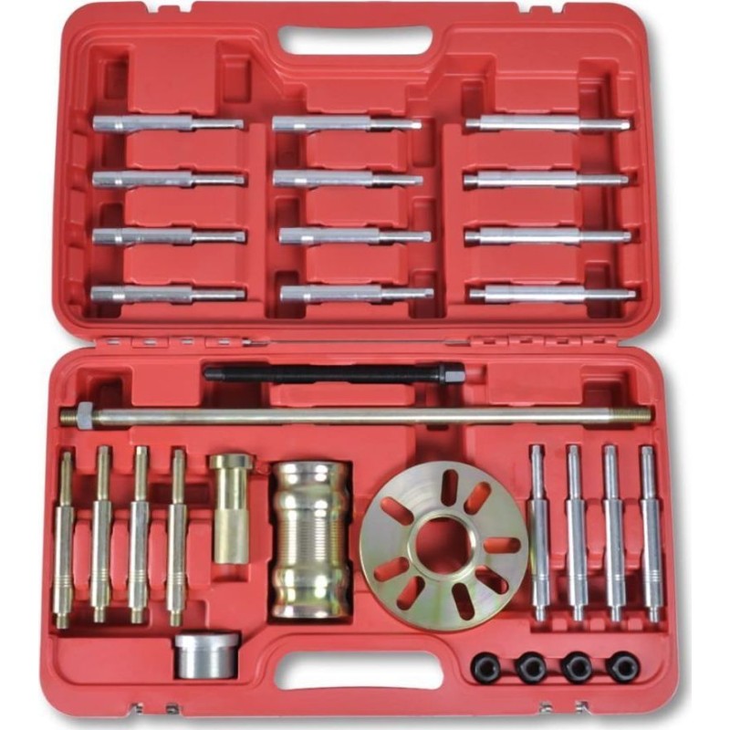 Dieses Werkzeugset zum Abziehen von Radnaben eignet sich hervorragend für die Garage und die Werkstatt. Dank seiner hohen Belastbarkeit, Vielseitigkeit und einfachen Aufbewahrung ist es ideal für den professionellen Einsatz geeignet. Das Set umfasst 30 Teile, die sich beim Ausbau von Radnaben oder Bremstrommeln in PKWs und leichten Nutzfahrzeugen bewähren. Alle Teile sind zur Erleichterung für den Benutzer in einem praktischen Koffer untergebracht.