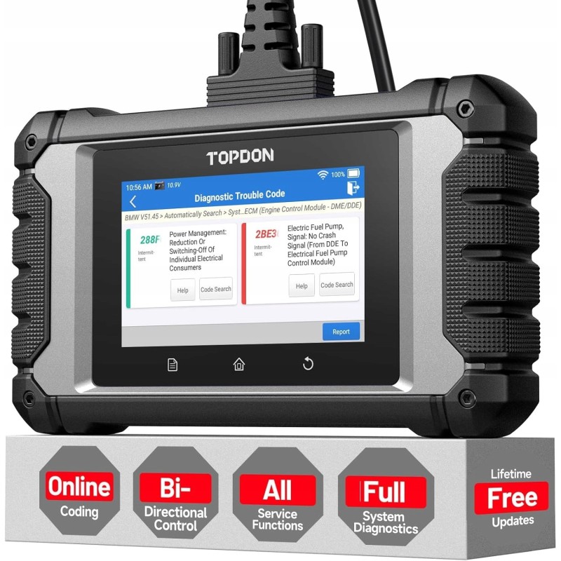 Dieses Gerät bietet eine vollständige Diagnose der Fahrzeugsysteme, was eine schnelle und effektive Identifizierung von Problemen ermöglicht. TOPDON ArtiDiag EU unterstützt Marken wie Benz, BMW und VAG, was es zu einem vielseitigen Werkzeug für jeden Besitzer von Fahrzeugen dieser Hersteller macht.