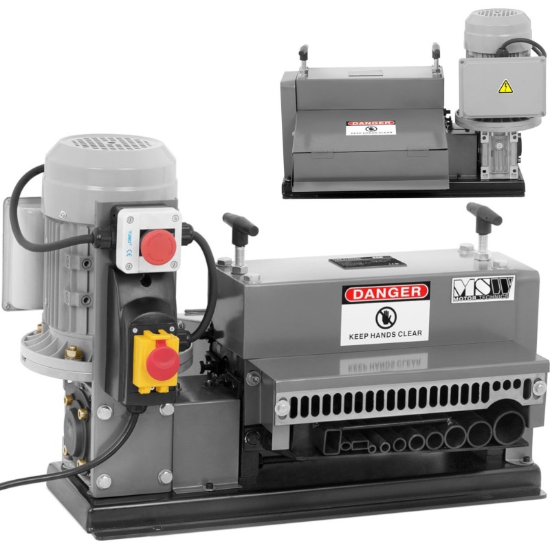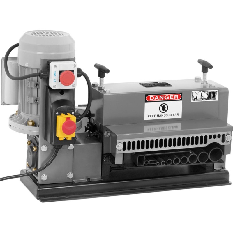 . Der Anpressdruck und die Einstellung der Klingen sind einstellbar, um das Gerät an die Isolierungsdicke anzupassen. Die Abisoliermaschine ist mit 11 Öffnungen für Kabel