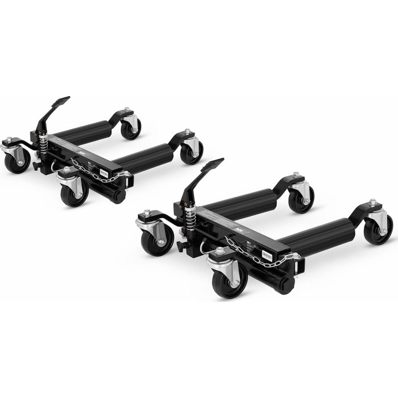 Die Transportrollen bestehen aus hochwertigem Stahl, der eine überdurchschnittliche Belastbarkeit garantiert. Dies ermöglicht den bequemen Transport und das Anheben von Fahrzeugen mit einem Gewicht von bis zu 680 kg (bei einem einzelnen Exemplar). Dank der einfachen Bedienung, des geringen Gewichts und der kompakten Abmessungen ist das Set zudem sehr mobil und komfortabel. Produktmerkmale: