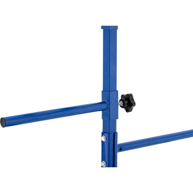 Der Ständer verfügt über eine Stahlkonstruktion, die maximale Gesamtbelastung beträgt 160 kg und die Belastung eines einzelnen Aufhängers 20 kg. Die große Trocknungsfläche wird durch die Ausstattung jeder Seite des Ständers mit 8 Aufhängern erreicht. Die Höhe der Querstreben lässt sich frei verstellen. Der Ständer verfügt über Rollen, die das Verschieben erleichtern.