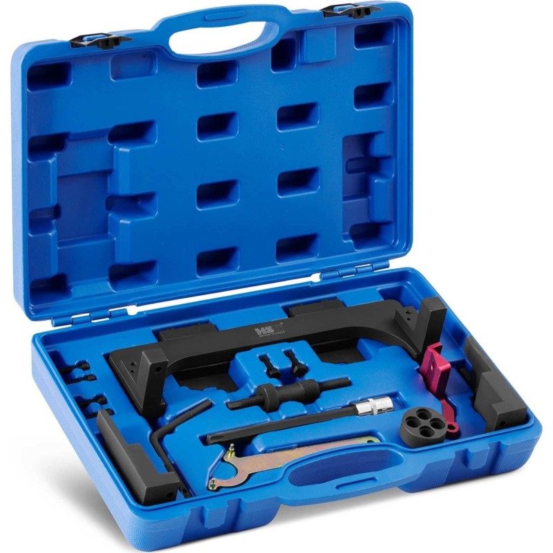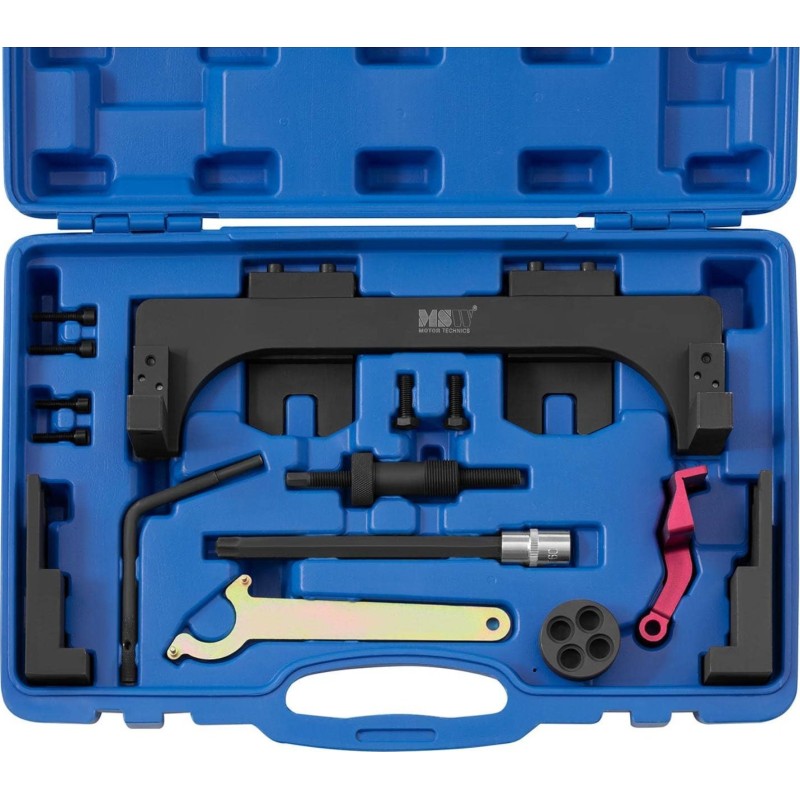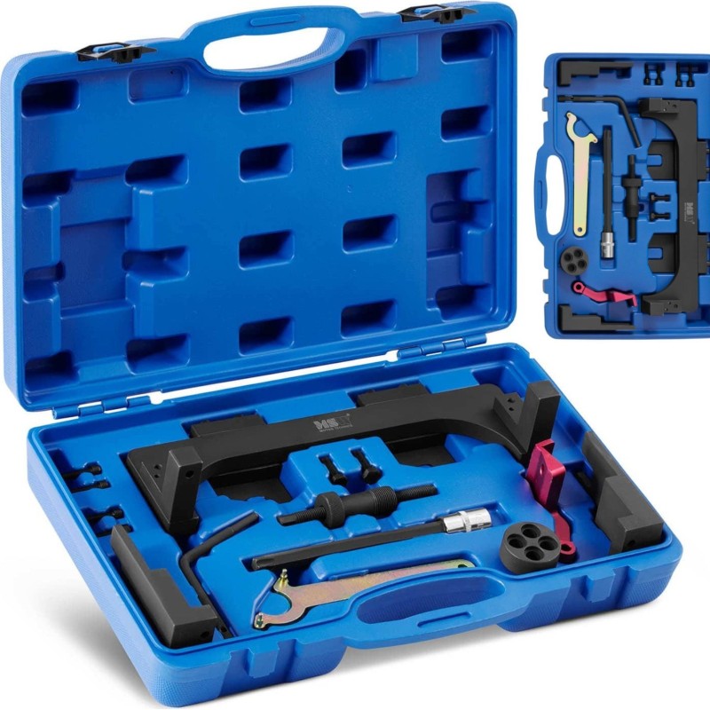 eignet sich ideal für Werkstätten und Garagen. Sie ermöglicht die eigenständige Durchführung komplexer Arbeiten an vielen BMW-Modellen mit Modulmotoren, z. B. B38, B48 und B58. Dieses Werkzeug ist optimal auf die entsprechenden Motorkomponenten abgestimmt und daher einfach zu bedienen. Die Nockenwellenarretierung garantiert die effektivste Methode zur Fixierung und Einstellung des Motors. Die Werkzeuge sind aus robustem Kohlenstoffstahl