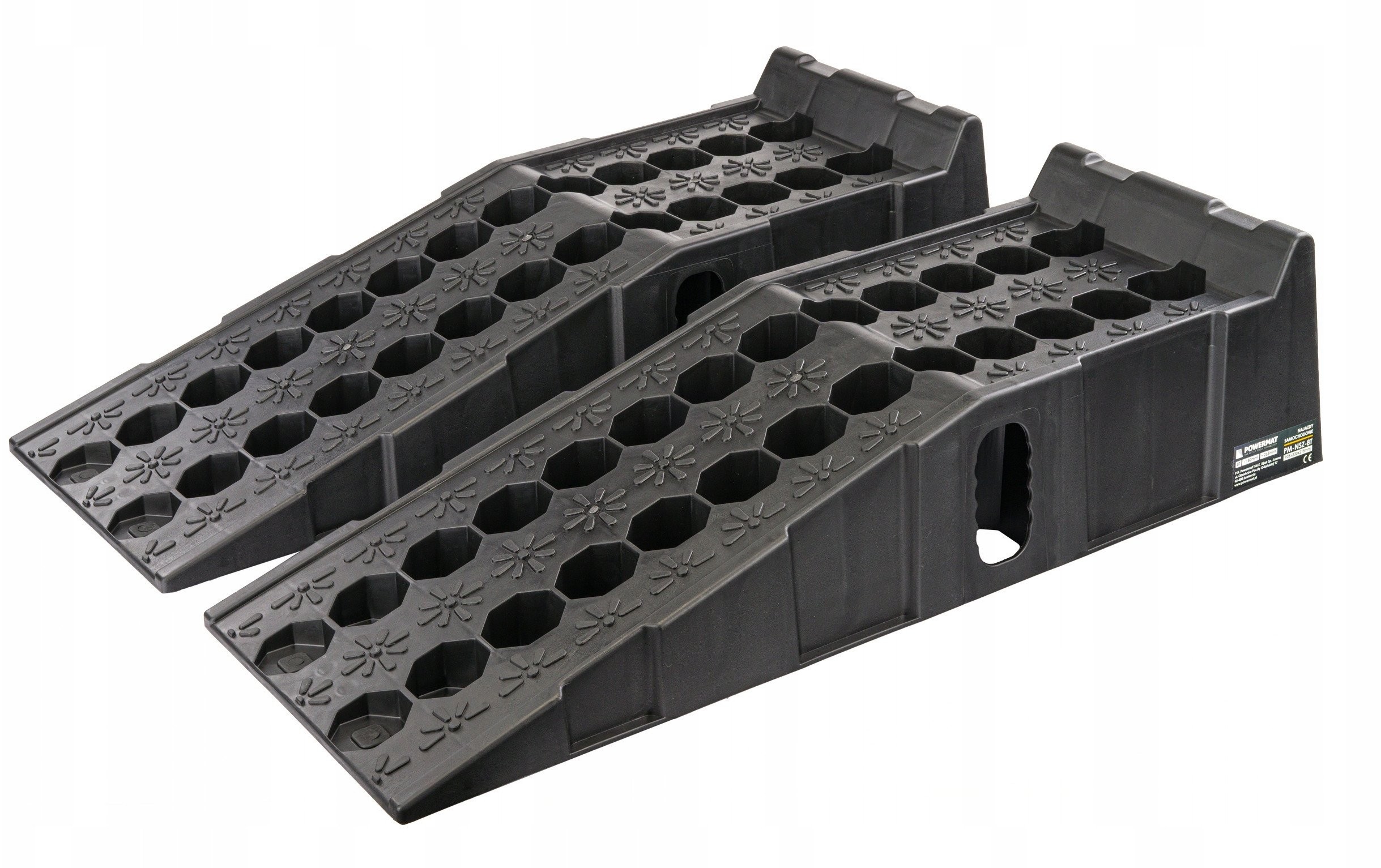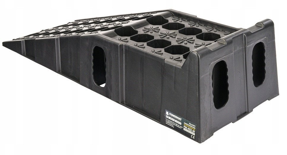 FAHRBORDSTEINE | 2 STÜCK | 8000 KG Marke: Powermat Modell: PM-NZS-8T Technische Daten Material: HDPE (hochdichtes Polyethylen) Maximale Tragkraft: 8 t Höhe: 180 mm Länge: 905 mm Breite: 265 mm Nettogewicht: 9,4 kg Die Auffahrrampen zeichnen sich durch eine stabile und robuste Konstruktion aus, die sich nicht verformt und nicht bricht, einer beträchtlichen Länge und Breite, die für die meisten PKWs geeignet ist, einem sanften Auffahrwinkel sowie Gummipuffern, die im Gegensatz zu anderen Produkten auf dem Markt in größerer Anzahl (bis zu sechs) vorhanden sind, was ein sicheres Auffahren der Räder auf die Rampen gewährleistet, ohne dass diese verrutschen. Ein hoher Anschlag verhindert ein versehentliches Herunterrollen vom Ende der Auffahrrampe. Vielseitige Einsatzmöglichkeiten: Auffahrrampen aus HDPE (High Density Polyethylen) sind vielseitig einsetzbar und eignen sich ideal für verschiedene Standorte wie Parkplätze, Lagerhallen oder Ladezonen. Einfache Installation und Transport: Das geringe Gewicht des Materials erleichtert den Transport, die Installation und einen eventuellen Standortwechsel der Auffahrrampen, was bei sich ändernden logistischen Anforderungen von Vorteil ist. Rutschfestigkeit und Sicherheit: Dank ihrer speziellen Oberfläche sorgen die Auffahrrampen für eine effektive Haftung der Fahrzeugreifen, was die Sicherheit bei Manövern erhöht. Witterungsbeständigkeit: Auffahrrampen aus HDPE sind witterungsbeständig, was sie langlebig und korrosionsbeständig macht – ein wichtiger Faktor insbesondere im Außenbereich. Einfache Reinigung: Das Material ist leicht zu reinigen, was den Zeit- und Kostenaufwand für die Sauberhaltung der Auffahrrampen minimiert – ein wichtiger Faktor in Bereichen mit hohem Fahrzeugaufkommen. Geringe Wartungskosten: Die Auffahrrampen erfordern nur minimale Wartung, was langfristig zu niedrigeren Betriebskosten führt. Nachhaltige Materialien: HDPE, das für die Herstellung der Auffahrrampen verwendet wird, ist ein äußerst widerstandsfähiges und umweltfreundliches Material, wodurch der Einsatz dieser Lösungen nachhaltige Praktiken fördert. Rutschfeste Gummis: Sechs rutschfeste Gummis unter den Fahrzeugauffahrten spielen eine entscheidende Rolle beim Schutz vor Rutschen und sorgen für zusätzliche Haftung auf der Fahrbahn. Diese innovative Konstruktion erhöht die Sicherheit bei Logistikvorgängen und eliminiert das Risiko, die Kontrolle über das Fahrzeug zu verlieren, insbesondere bei schwierigen Wetterbedingungen.