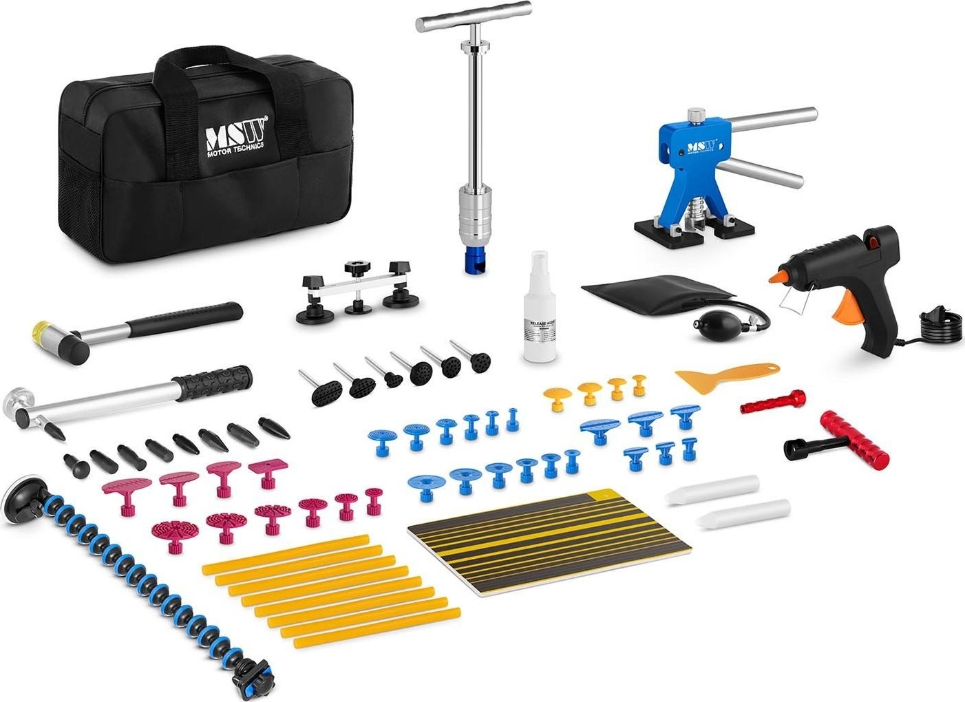 MSW PDR-Reparaturset zum Ausbeulen von Karosseriebeulen PROFI – 70 Teile PDR-Reparaturset zum Ausbeulen von