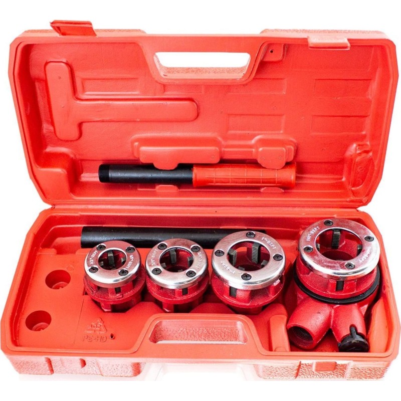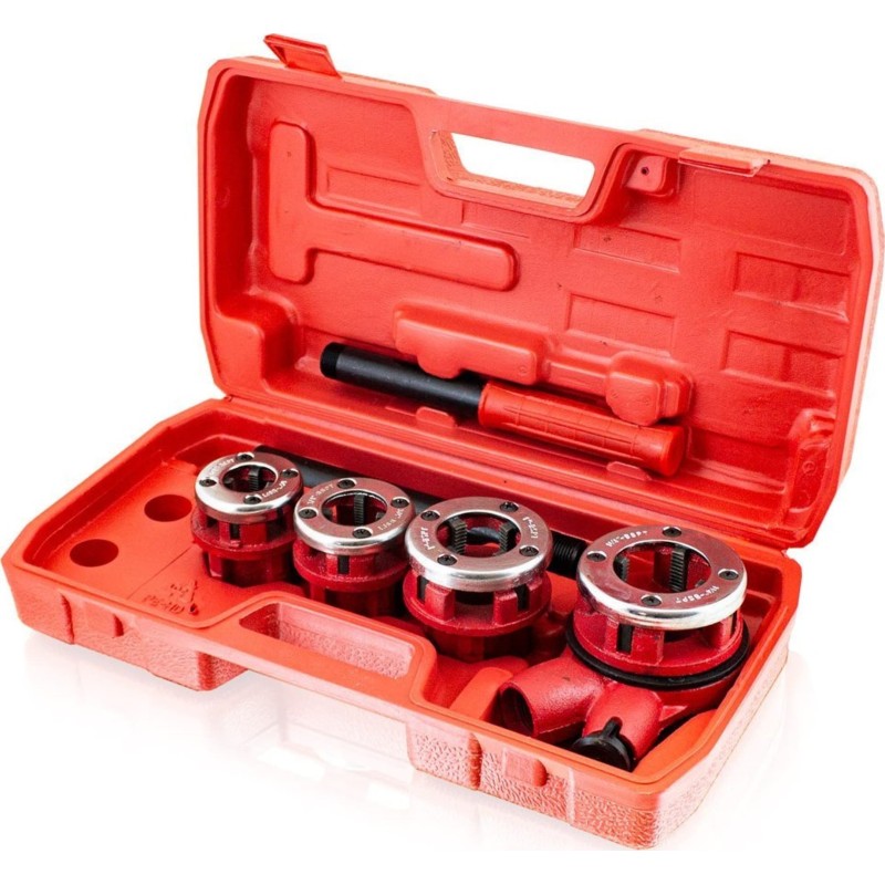 Die Konstruktion aus Vanadium-Chrom-Stahl ist auch für hohe Belastungen ausgelegt. Die Gewindeschneidmaschine ist ein Werkzeug, das Ihnen ein äußerst komfortables Arbeiten garantiert.