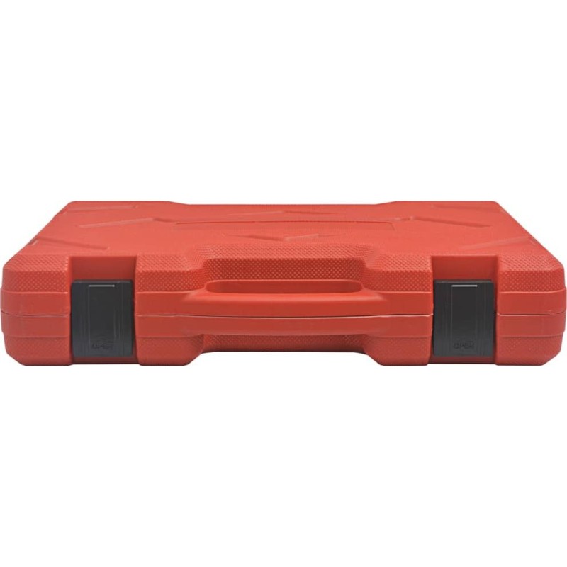 Es verfügt über ein Hochdruckmanometer mit doppelter Skala (0–140 PSI und 0–10 bar) für präzise Messungen. Dieses Set enthält ein umfassendes Sortiment an Adaptern und Zubehör für moderne Einspritzsysteme. Diese Teile sind mit einem Schnellverschlusssystem und einem Sicherheitsventil ausgestattet, um ein versehentliches Austreten von unter Druck stehendem Kraftstoff zu verhindern. Das aus hochwertigen Materialien gefertigte Werkzeugset ist äußerst langlebig. Darüber hinaus wird es in einem spritzgegossenen Koffer geliefert, der den Transport und die Aufbewahrung erleichtert.