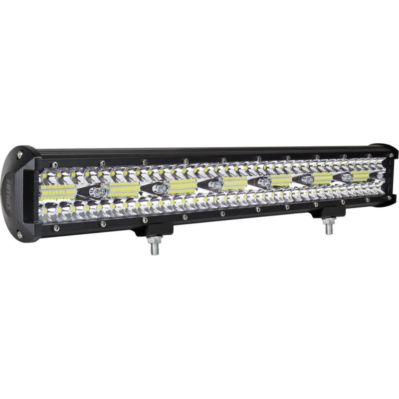 Die robuste Panel-Leuchte Modell AWL28 eignet sich unter anderem für den Einsatz in Geländewagen, Land- und Baumaschinen, Quads, Booten oder als Zusatzbeleuchtung in Lastkraftwagen. EIGENSCHAFTEN: COMBO-Panel - strahlt diffuses und gebündeltes Licht aus verstellbare Montagehalterungen aus Edelstahl großer Eingangsspannungsbereich robustes, wasserdichtes Aluminiumgehäuse die Schutzart IP67 ermöglicht den Einsatz der Leuchte unter rauen Witterungsbedingungen geringer Stromverbrauch im Verhältnis zur Lichtleistung CE- und RoHS-zertifiziert TECHNISCHE PARAMETER : Eingangsspannung: DC 9–36 V Anzahl der LEDs: 140 Epistar-LEDs Max. Leistung: 420 W Max. Lichtleistung: 42.000 lm Lichtfarbe: 6.000–6.500 K (weiß) Schutzart: IP67 Betriebstemperatur: -40 °C bis +65 °C EMV-Zulassung: E9, ECE R10 Modell: AWL28 ABMESSUNGEN: (L x B x H) 520 x 74 mm LIEFERUMFANG: Leuchte, Halterung und Befestigungsschrauben
