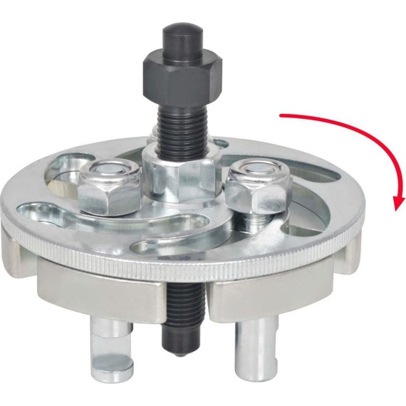 Dieser universelle Abzieher eignet sich ideal zum beschädigungsfreien Abziehen von Riemenscheiben und Zahnrädern an Nockenwellen. Dank der verstellbaren Greifarme lässt sich das Werkzeug an verschiedene Scheibendurchmesser anpassen.