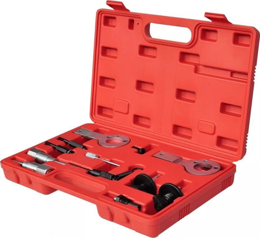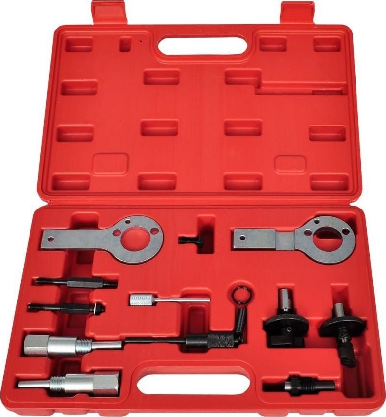 Das Set enthält Werkzeuge zum Arretieren der Kurbelwelle, die beim Austausch des Zahnriemens gegen einen neuen nützlich sind.