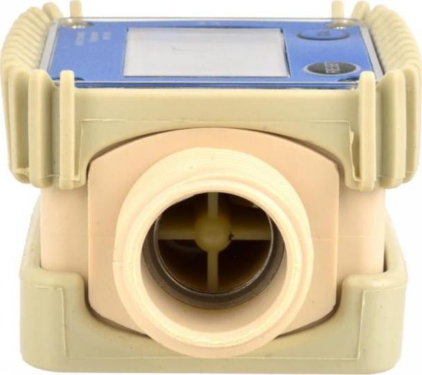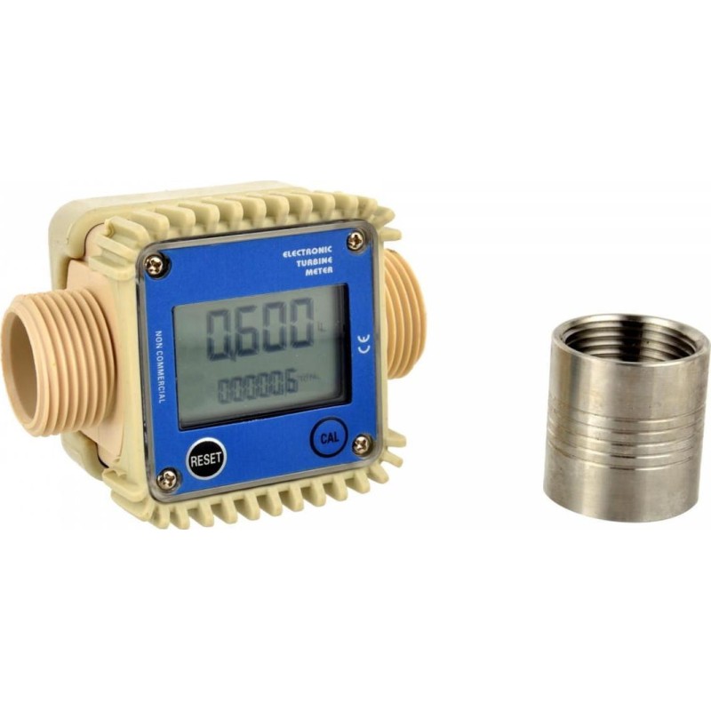 Digitaler Zähler für die CPN-Kraftstoffpumpe Digitaler Zähler für die Kraftstoffpumpe mit Turbinen-Durchflussmesssystem. Einsatzbereich: Dieselkraftstoff und andere Öle mit niedriger Viskosität Das Gerät verfügt über ein LCD-Display mit zwei numerischen Anzeigen. Der Zähler zeigt folgende Daten an: einzelne Betankung, aktueller Kraftstoffdurchfluss, Summe aller Betankungen. Produktmerkmale: Zählwerk für einzelne Betankung: löschbar, 5 Stellen; Gesamtzähler: 6 Stellen; Genauigkeit: ± 1 %; Maßeinheit des Zählwerks für einzelne Betankung: L/Gal/Pts/Qts Maßeinheit des Gesamtzählers: L/Gal Kalibrierbarkeit: ja 2 Tasten: RESET und CAL Stromversorgung: 2x 1,5-V-Alkalibatterie AAA Batterielebensdauer im Standby-Modus: 2 Jahre