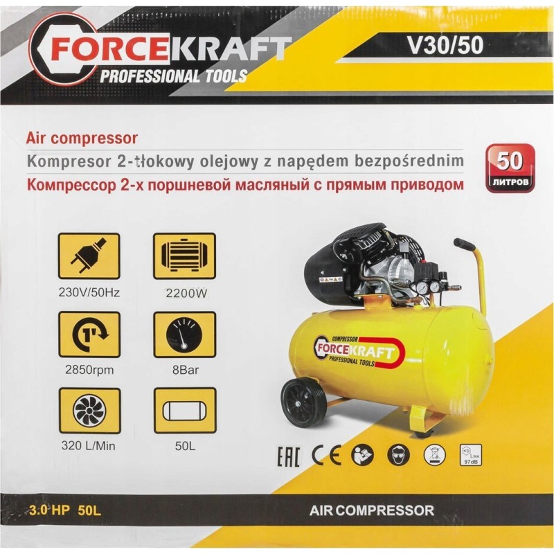 Kompressor ROCKFORCE / WMC KOMPRESSOR 50 l, 2-Kolben, 2,2 kW, 8 bar, 230 V / FORCEKRAFT