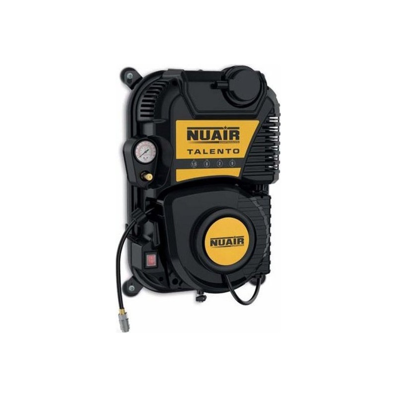 Nuair-Kompressor – ölfreier Wandkompressor, 1,5 PS, 8 bar, 2 l, 9 m Schlauch, schallgedämpft (1 Stück)