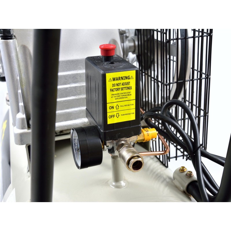 Ölkompressor mit einem leistungsstarken 3-PS-Motor und einem Tankvolumen von 100 Litern. Ausgestattet mit einem Druckminderer, der die Einstellung des Drucks im Tank ermöglicht. Drei Kolben sorgen für einen langlebigen Betrieb des Kompressors.