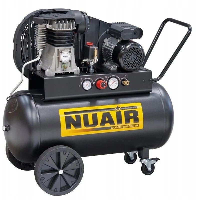 Der Kompressor zeichnet sich durch die horizontale Anordnung des Tanks und seine kompakten Abmessungen (1030 x 440 x 850 mm) aus, was die Lagerung und den Transport erleichtert. Dank der robusten Kunststoffabdeckung des Riemens ist das Gerät gut vor Beschädigungen geschützt, und seine Leistung bleibt auf hohem Niveau.