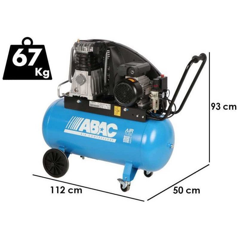 Technische DatenDer Kompressor verfügt über einen Luftbehälter mit einem Fassungsvermögen von 90 Litern und eine Ansaugleistung von 393 l/min. Seine Abmessungen betragen 1123 mm Länge, 502 mm Breite und 930 mm Höhe, das Gewicht liegt bei 67 kg. Das Gerät wird mit 230 V betrieben und arbeitet mit einer Pumpendrehzahl von 1050 U/min.