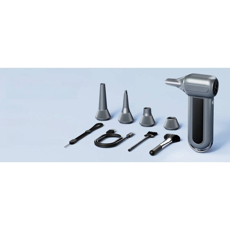Im Lieferumfang des WOLFBOX MF100 sind 5 Düsen und 2 Bürsten enthalten, was seine Funktionalität erhöht. Der Kompressor eignet sich hervorragend zum Aufpumpen von Matratzen und Schwimmbecken sowie zur Reinigung von elektronischen Geräten wie Computern und Tastaturen.