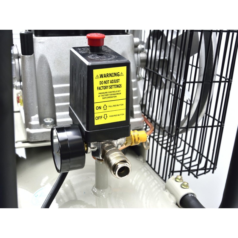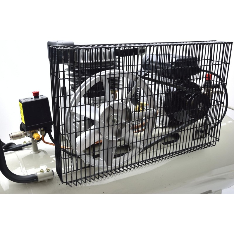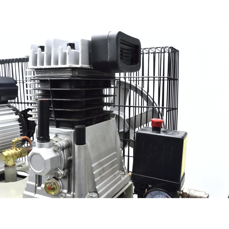 Ölkompressor mit einem leistungsstarken 2-PS-Motor und einem Tankvolumen von 100 Litern. Ausgestattet mit einem Druckminderer, der die Einstellung des Drucks im Tank ermöglicht.