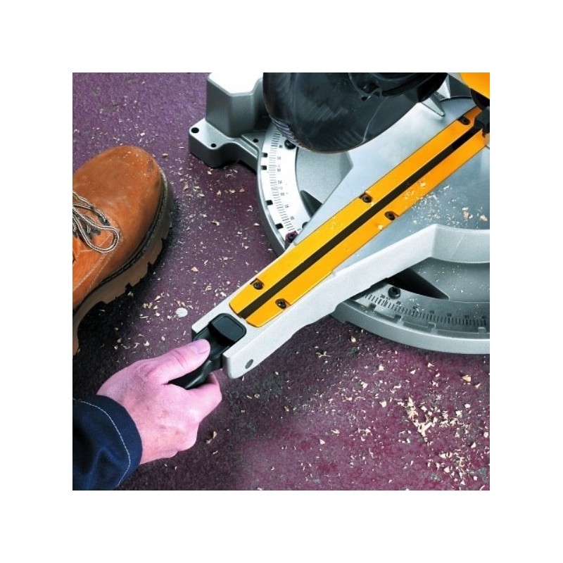 Die Aluminiumkonstruktion des Sockels der Dewalt DW712N macht sie leicht und einfach zu transportieren. Das Gewicht von 19,5 kg stellt kein Hindernis bei der Arbeit dar, was sie zum idealen Werkzeug für verschiedene Anwendungen macht.