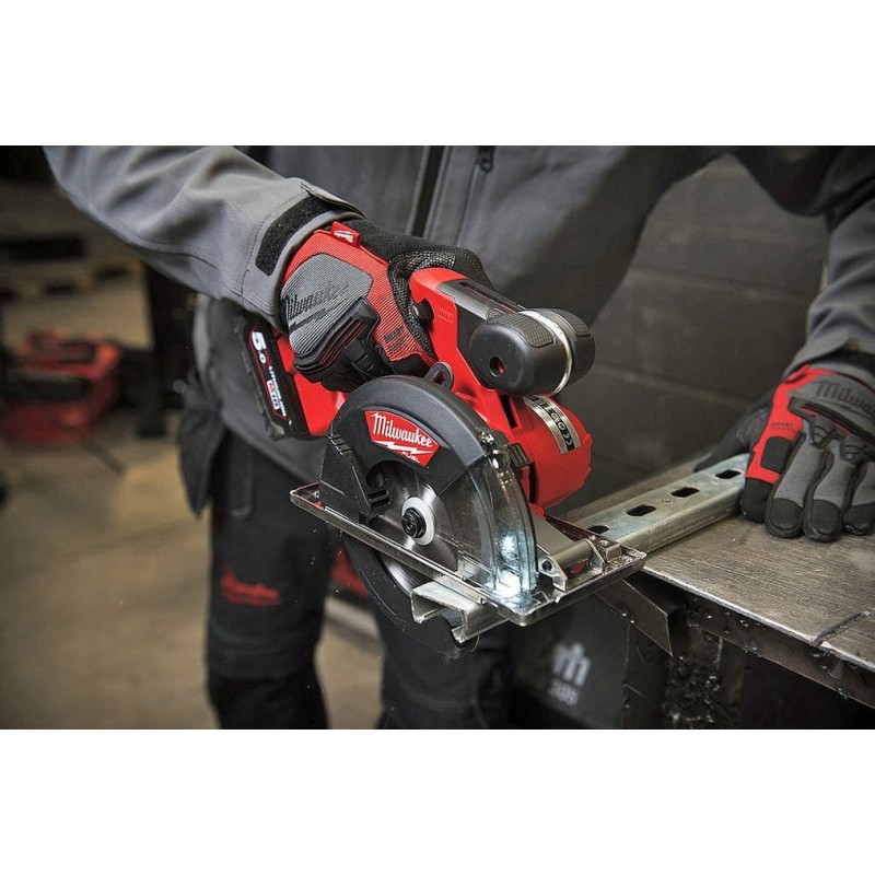 Mit einem Gewicht von nur 2,4 kg ist die Akku-Metallkreissäge M18 FMCS-0 extrem leicht und handlich. Ihre kompakte Bauweise erleichtert das Manövrieren und den Transport, was sie zur idealen Wahl sowohl für Profis als auch für Heimwerker macht.