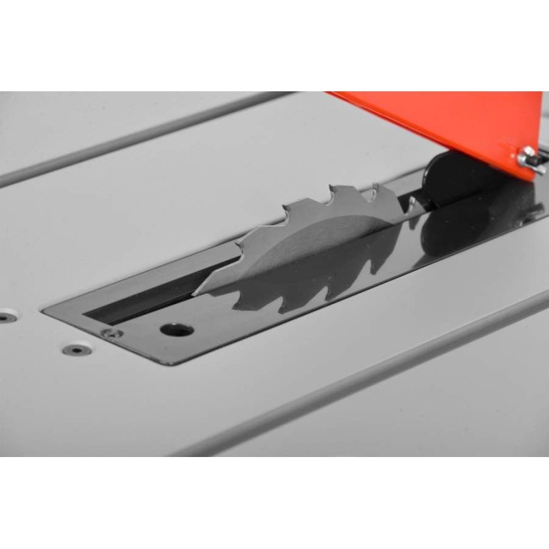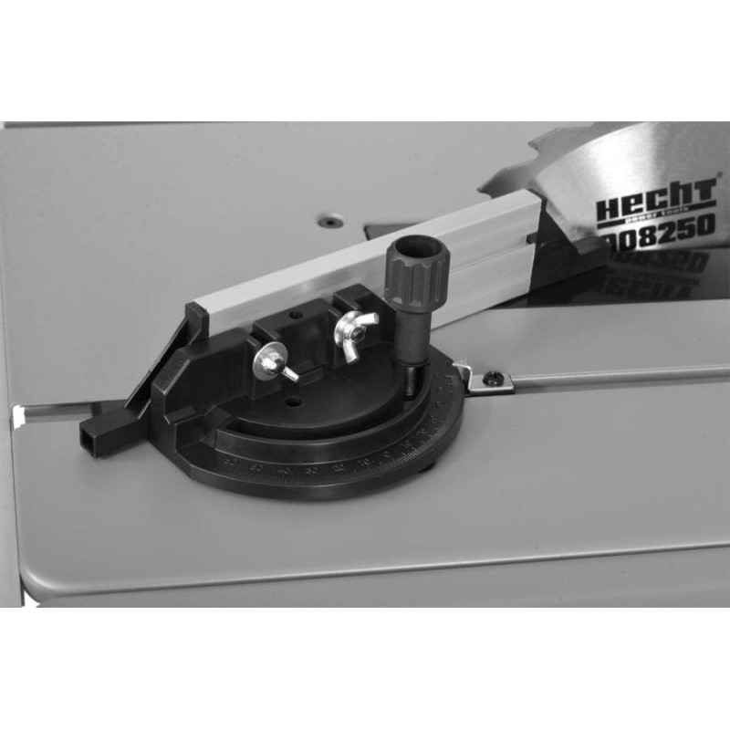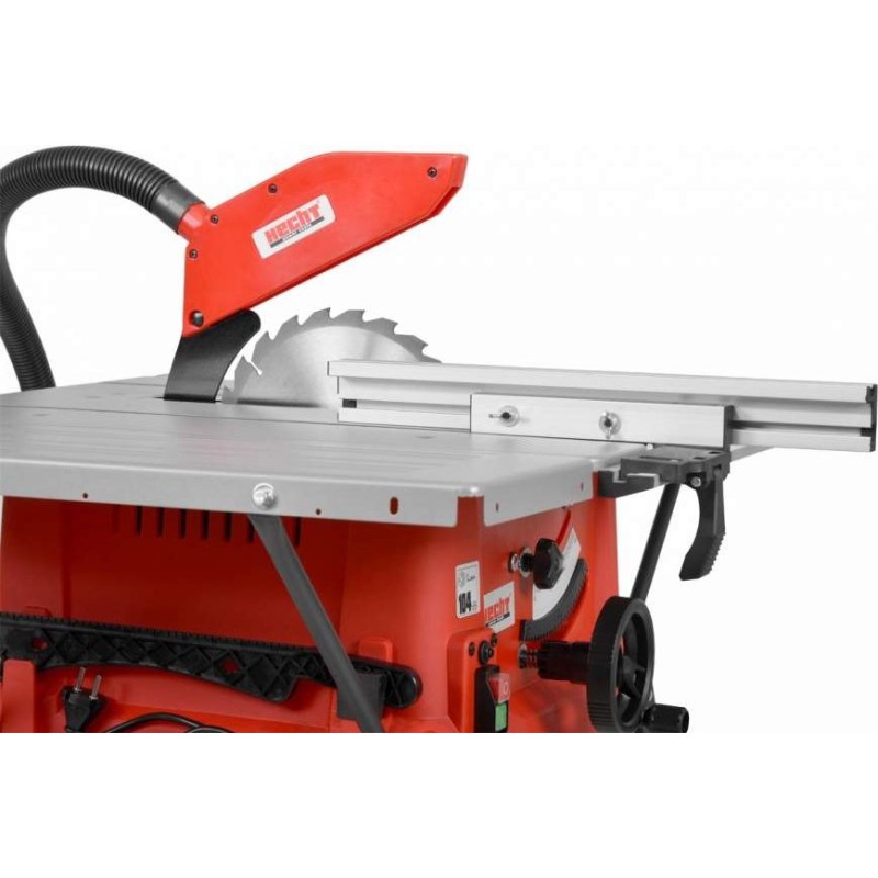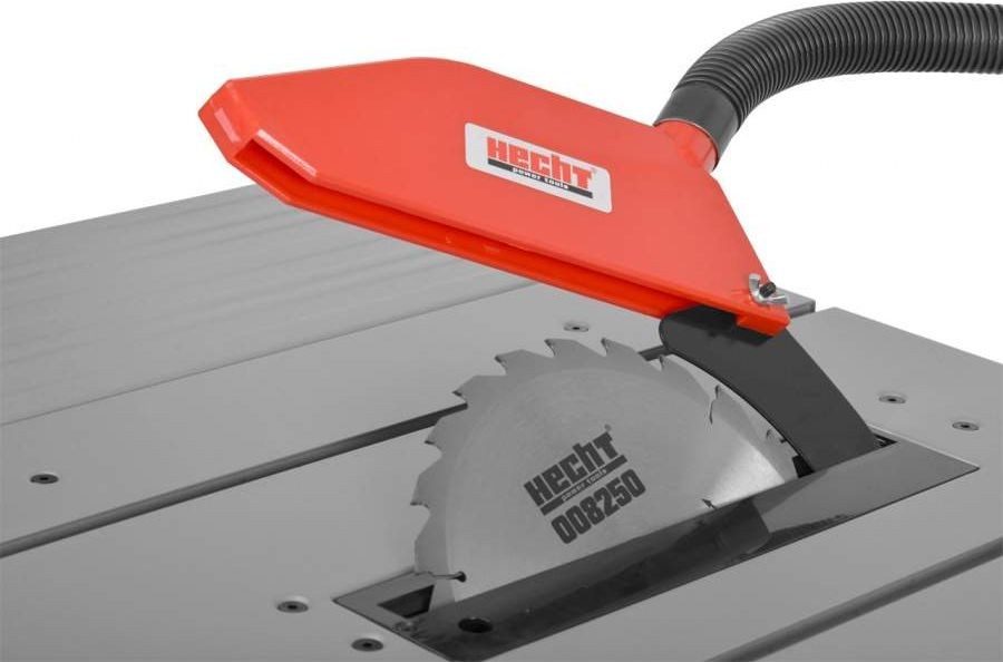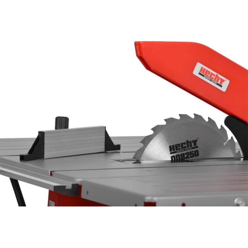 Die elektrische Tischsäge HECHT 8254 ist ein hervorragender Helfer in jeder Heimwerkerwerkstatt. Die Tischhöhe beträgt 829 mm. Die Schnitttiefe bei 90° beträgt 85 mm, bei 45° 65 mm. Das Gerät ist mit einem 2000-W-Motor ausgestattet; dank des leistungsstarken Antriebs erreicht die Säge eine Drehzahl von 5000 U/min, der Durchmesser des Sägeblatts beträgt 250 mm. Weitere Vorteile: Höhenverstellung des Sägeblatts; Neigungsverstellung des Sägeblatts von 90° bis 45°; leistungsstarker Motor mit einer Leistung von 2000 W; verstellbare Führungen für präzise Schnittführung; Anschlussmöglichkeit für einen Staubsauger zum Absaugen von Sägespänen