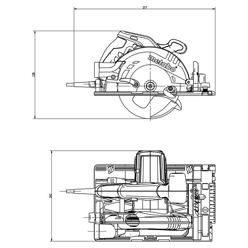 - Robuste Handkreissäge für den direkten Einsatz auf Metabo-Führungsschienen oder auf Führungsschienen anderer Hersteller