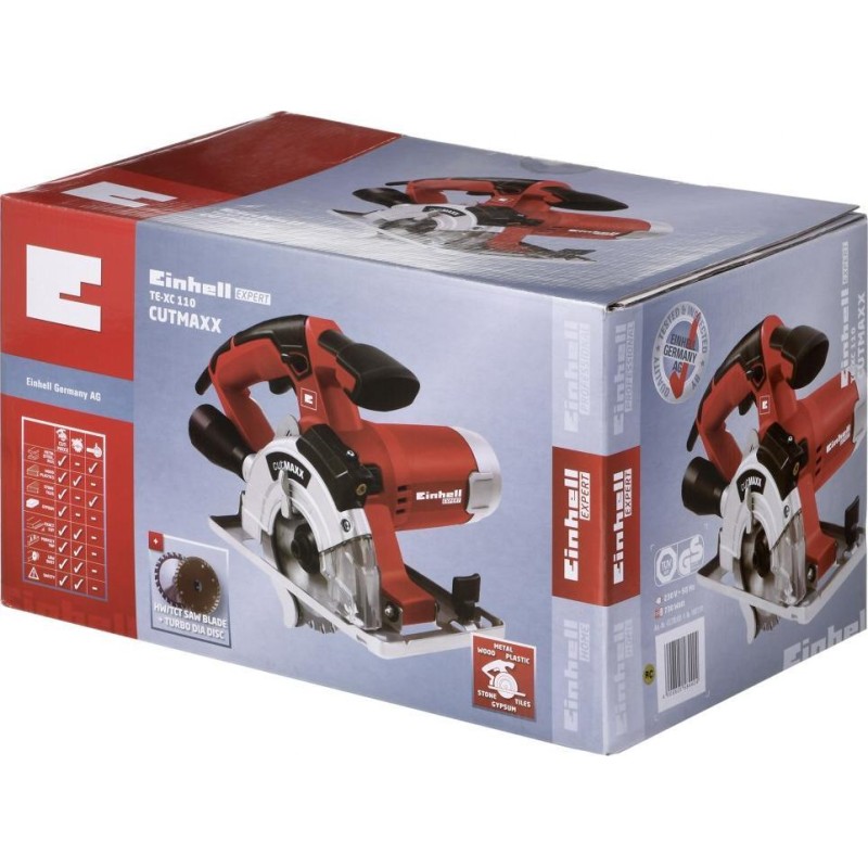 Die universelle Handkreissäge Einhell TE-XC 110 ist ein leistungsstarkes und äußerst vielseitiges Werkzeug für Heimwerker mit einem drehmomentstarken und staubgeschützten Motor. Sie bewährt sich als professioneller Helfer beim Schneiden von Metall, Holz, Kunststoff, Gipskartonplatten, Stein und Fliesen. Dank ihrer ergonomischen Bauweise und dem weichen Griff liegt die Säge gut in der Hand und ermöglicht eine bequeme und sichere Führung.