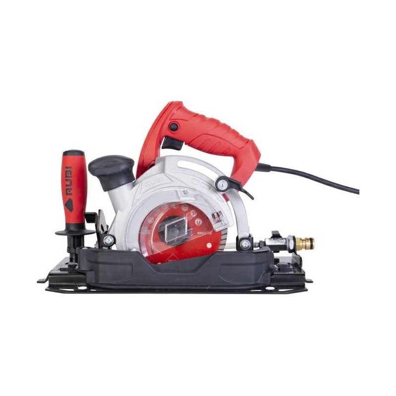 - Die Rubi RC-125 ist mit einer Sägeblattabdeckung mit leicht zu öffnendem Deckel ausgestattet, der den Sägeblattwechsel erleichtert und das Verspritzen von Wasser und Material minimiert