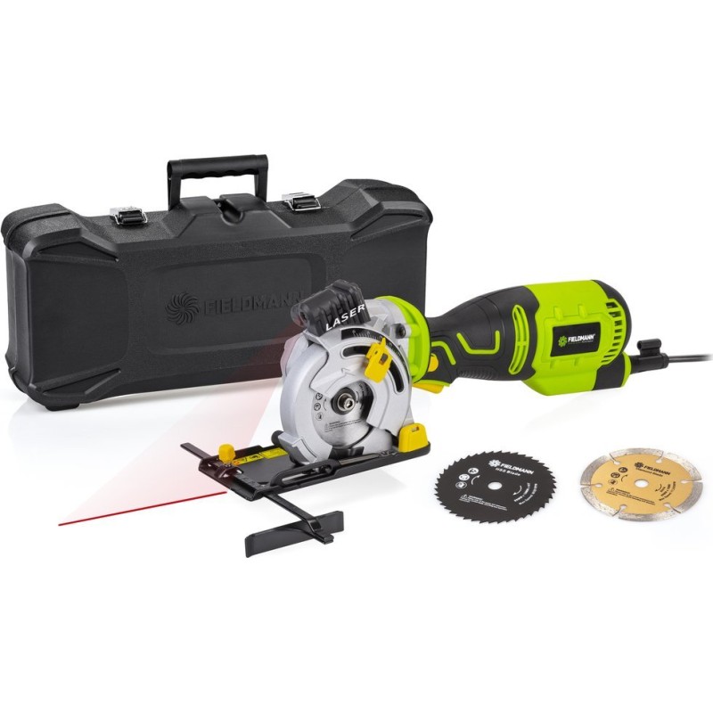 Fieldmann FDPP 200705-E. Geeignet für Materialien: Holz, Produktfarbe: Schwarz, Grün, Zertifizierungen: CE. Scheibendurchmesser: 8,9 cm, Leerlaufdrehzahl (max.): 4500 U/min, Schnitttiefe bei 90°: 2,85 cm. Stromversorgung: Wechselstrom, Leistungsaufnahme: 705 W, Eingangsspannung AC: 230 V. Produktgewicht: 4 kg. Schlüsseltyp: Sechskantschlüssel