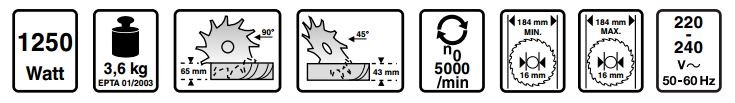 | Schnitttiefe bei 45° | 43 mm |