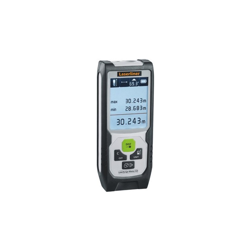 Der Entfernungsmesser LaserRange-Master Gi5 ist mit Lasermodulen der DLD-Version ausgestattet. Diese garantieren eine hohe Qualität der Laserlinie sowie ein klares, scharfes und somit gut sichtbares Linienbild. Grüne Laser – insbesondere in der DLD-Version – bieten einen Vorteil hinsichtlich der Sichtbarkeit der Laserlinie unter ungünstigen Bedingungen. Funktionen: Entfernungsmessung Flächenmessung Volumenmessung Dauermessung Winkelfunktion 1 + 2 + 3 Digitale Wasserwaage zum Ausrichten des Messgeräts. Kalibrierung des Neigungssensors Das Gerät verfügt über 50 Speicherplätze Die Energiesparfunktion schaltet das Gerät automatisch aus Technische Daten: Entfernungsmessbereich: 0,05 m – 50 m Entfernungsmessgenauigkeit: +/- 2 mm Winkelmessbereich: 0–90° Winkelmessgenauigkeit: 0,1° Laserklasse: 2 < 1 mW Laserwellenlänge: 515 nm Automatische Abschaltung: Laser nach 30 Sek. / Gerät nach 3 Min. Stromversorgung: 2 AA-Batterien 1,5 V Abmessungen: 50 x 122 x 27 mm Gewicht: 140 g