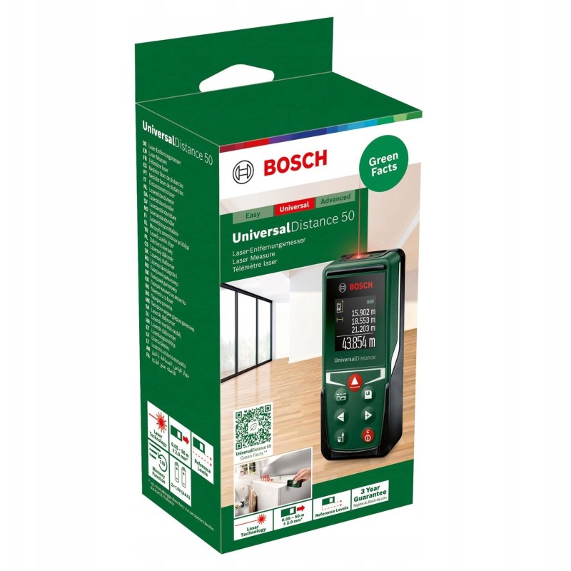 Der Bosch Laser-Entfernungsmesser UniversalDistance 50 ist ein modernes Gerät, das eine genaue Entfernungsmessung bis zu 50 m mit einer Genauigkeit von bis zu 2 mm ermöglicht. Dank fortschrittlicher Technologie erfolgt die Messung schnell und problemlos, was ihn zum idealen Werkzeug sowohl für Profis als auch für Hobbyhandwerker macht.