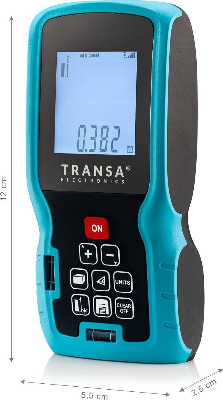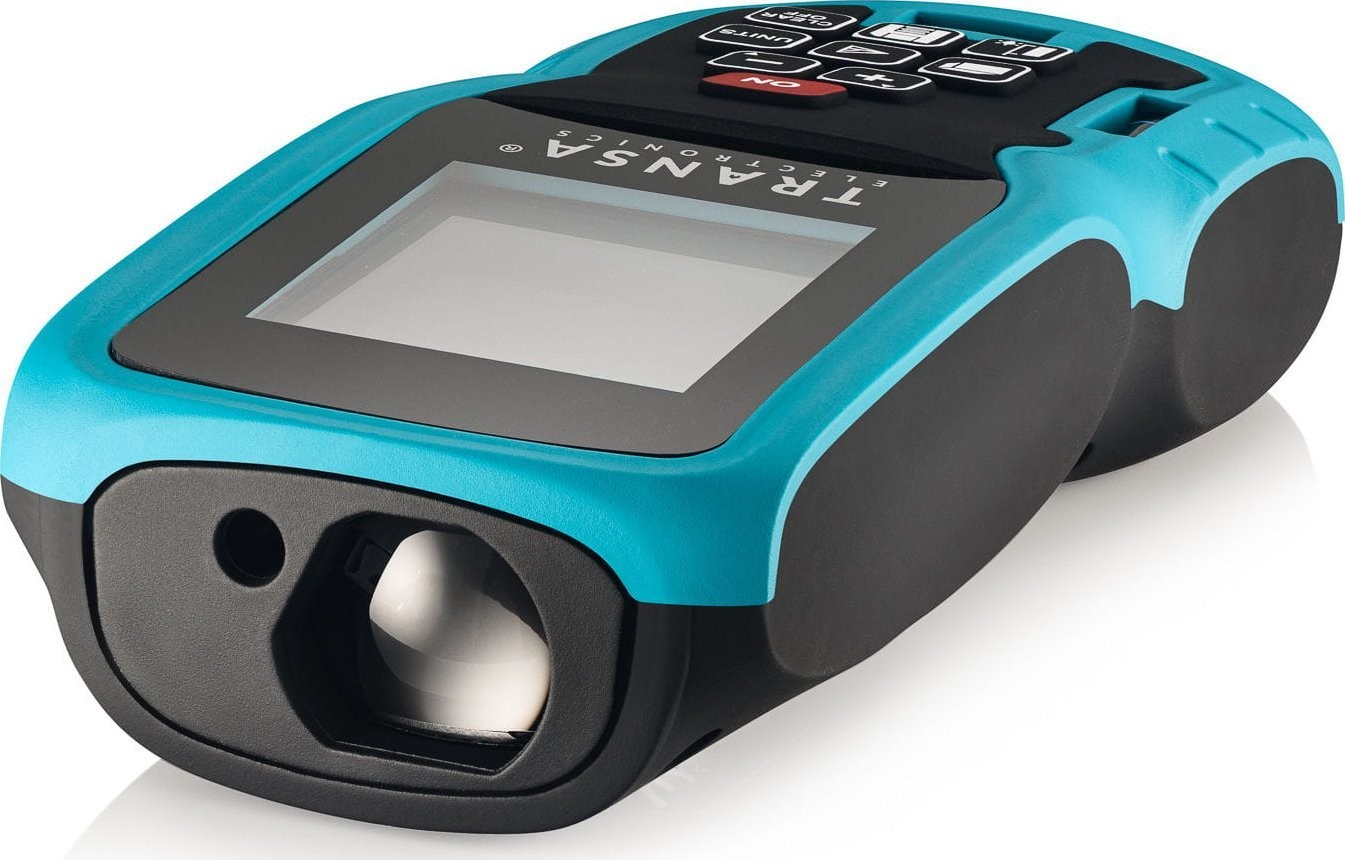 Der Laser-Entfernungsmesser MeasureMe100 von Transa Electronics® ist ein präzises Gerät für sehr genaue Messungen von Entfernungen, Flächen und Volumen. Er kann mithilfe des Satzes des Pythagoras auch Höhen messen.
