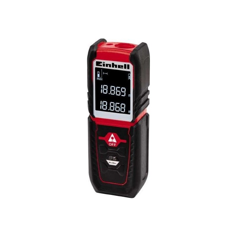 Der TC-LD 25 LASER-ENTFERNUNGSMESSER von Einhell ist ein kleines und handliches Gerät für präzise Entfernungsmessungen bis zu 25 Metern. Mit diesem Messgerät lassen sich Entfernungen messen sowie Flächen und Volumen berechnen. Die Messung kann von der Vorder- oder Hinterkante aus erfolgen. Die Min/Max-Funktion ermöglicht fortlaufende Messungen. Das Gerät schaltet sich nach drei Minuten Inaktivität automatisch aus.
