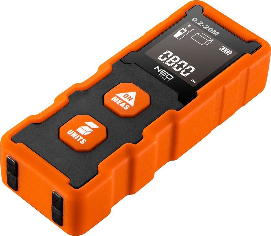 Ein solches Gerät ist der Laser-Entfernungsmesser Neo. Er dient zur schnellen und sehr genauen Entfernungsmessung. Die maximale Reichweite des Geräts beträgt bis zu 20 Meter, bei einer Genauigkeit von bis zu 2 Millimetern. Darüber hinaus ermöglicht der Entfernungsmesser die Umschaltung der Maßeinheit zwischen Millimetern, Fuß und Zoll.