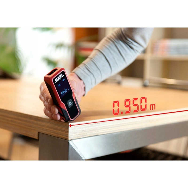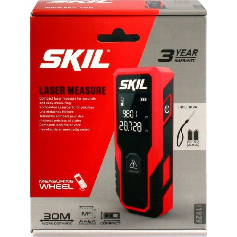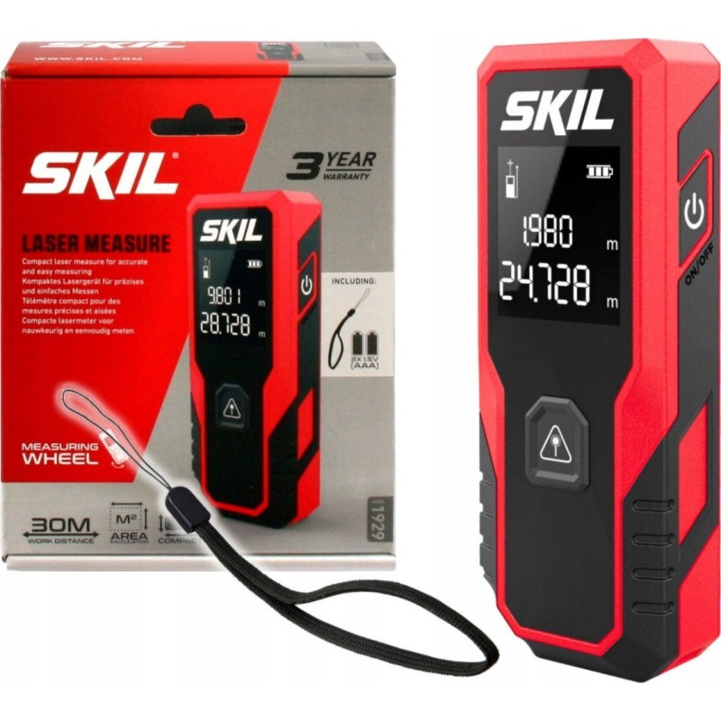 Der Laser-Entfernungsmesser SKIL Modell 1929 ist ein Messgerät, mit dem wir Messungen im Bereich von 20 Zentimetern bis 30 Metern (von 0,2 m bis 30 m) durchführen können.