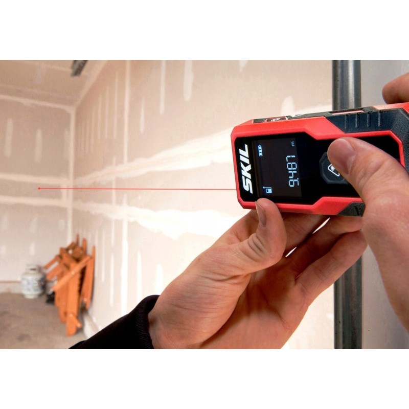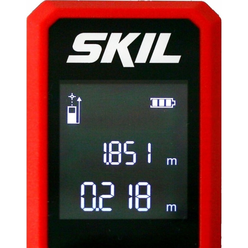 Verständliche grafische Symbole auf dem großen LCD-Display garantieren eine einfache Bedienung: Der Benutzer entscheidet, ob er eine Länge, eine Fläche oder mit dem Messrad messen möchte, und der SKIL-Entfernungsmesser führt die Messung in nur wenigen Sekunden mithilfe modernster Lasertechnik durch.
