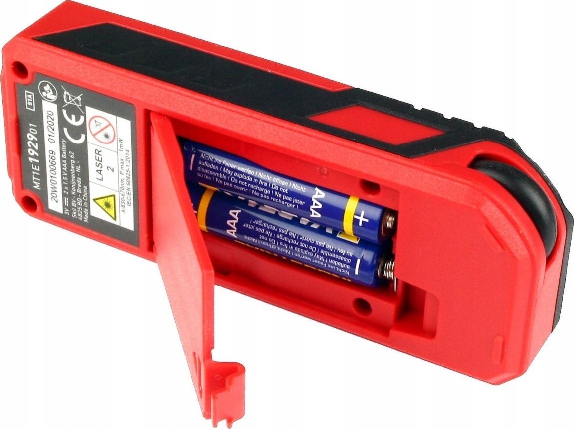 Der Laser-Entfernungsmesser SKIL Modell 1929 wird mit zwei 1,5-V-Batterien vom Typ LR06 (AAA) betrieben wird, die bis zu 3.000 Einzelmessungen ermöglichen. Die auf dem Display angezeigte Batteriestandsanzeige informiert den Benutzer rechtzeitig darüber, wann die Batterien ausgetauscht werden müssen.