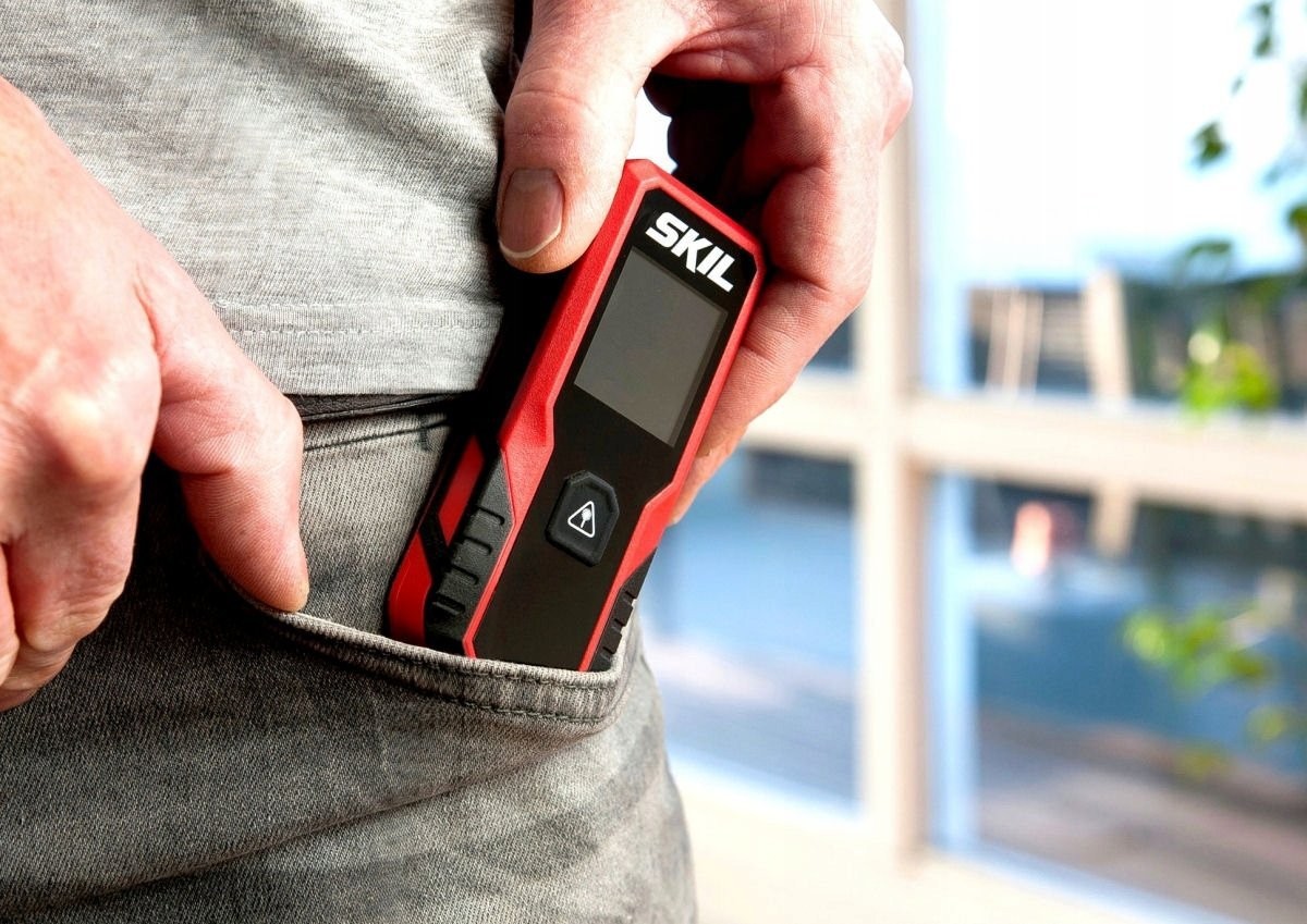 Der Laser-Entfernungsmesser SKIL Modell 1929 ist so klein, dass er problemlos in eine Hemd- oder Hosentasche passt.