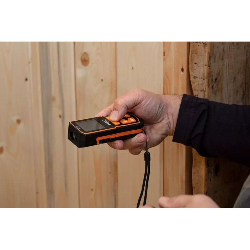 Der Laser-Entfernungsmesser der Marke NEO (Art.-Nr. 75-203) ist ein hochwertiges Gerät zur Messung von Entfernungen, Flächen und Volumen. Die Funktionen des Entfernungsmessers ermöglichen indirekte Messungen (mithilfe des Satzes des Pythagoras) sowie fortlaufende Additions- und Subtraktionsmessungen, Maximal- und Minimalmessungen sowie die Möglichkeit, vom Anfang, der Mitte und dem Ende des Geräts aus zu messen. Darüber hinaus ist das Gerät mit einer automatischen Wasserwaage ausgestattet, die es ermöglicht, den Neigungswinkel des Geräts laufend abzulesen. Es verfügt über einen Speicher für die letzten 30 Messungen.