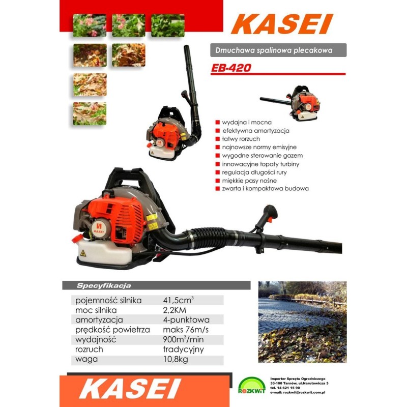 LAUBBLASER-SAUGER EB420E KASEI Mit Hilfe des Gartenstaubsaugers/Laubbläsers lassen sich die Einfahrt, die Terrasse oder andere Bereiche des Gartens problemlos nicht nur von Laub, sondern auch von anderen organischen Abfällen befreien. Benzinbetriebener Laubbläser für Komfort