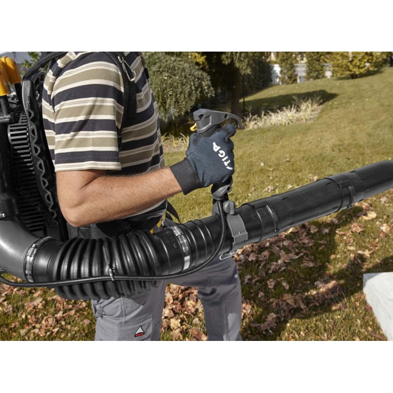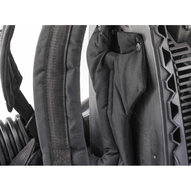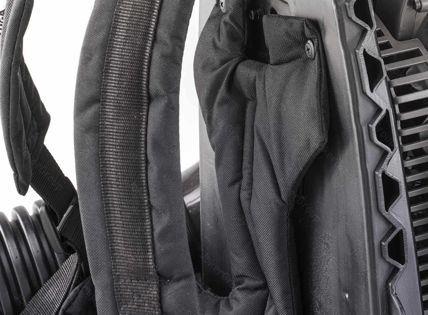 Die Maschine SBP 327 garantiert Komfort und gute Manövrierbarkeit dank des verstellbaren Griffs mit Steuerhebel und integrierter Drosselklappensperre. Der Schlauch besteht aus flexiblen Gummiteilen, was die Steuerung des Luftstroms erleichtert. Der Rückentragegurt mit Schultergurten und Hüftgurt ermöglicht eine Gewichtsverteilung, was die Arbeit erleichtert und den Komfort selbst bei anspruchsvolleren Aufgaben auf größeren Flächen verbessert. Die Filterabdeckung erleichtert den Zugang und den Austausch.