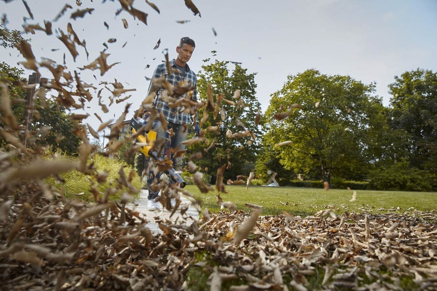 Das Gerät bietet eine präzise 3-stufige Luftstromregelung, mit der sich die Leistung des Laubbläsers an verschiedene Aufgaben anpassen lässt. So lassen sich Blätter mühelos von verschiedenen Oberflächen entfernen und Terrassen, Wege oder Innenräume von Schuppen und Scheunen reinigen.