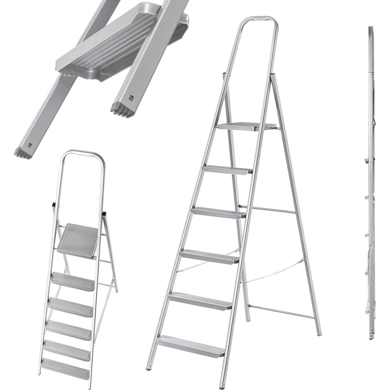 Durchdachte Konstruktion – die Klappleiter Servey garantiert Ihnen absolute Sicherheit bei der Benutzung. Alle Sprossen sind mit speziellen, rutschfesten Rillen versehen, während die Beine der Leiter über rutschfeste Fußkappen verfügen.