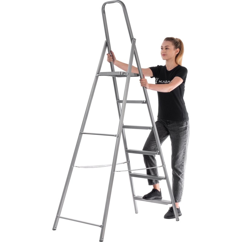 Großputz? Umfangreiche Renovierung? Oder vielleicht eine schnelle Reparatur? Die Leitern von Sarvey helfen dir bei all diesen Gelegenheiten – alle verfügbaren Modelle sind mit bequemen, breiten Podesten ausgestattet, auf denen du Werkzeuge, zu entstaubende Dekoartikel oder gerade benötigte Reinigungsmittel abstellen kannst. Bei Bedarf können Sie an der Leiter auch zusätzliche Elemente anbringen, die die Arbeit erleichtern, wie zum Beispiel Haken für einen Farbeimer. Statten Sie Ihr Zuhause mit einem praktischen, robusten Accessoire aus – entscheiden Sie sich für die Stahlleitern von Kadax!