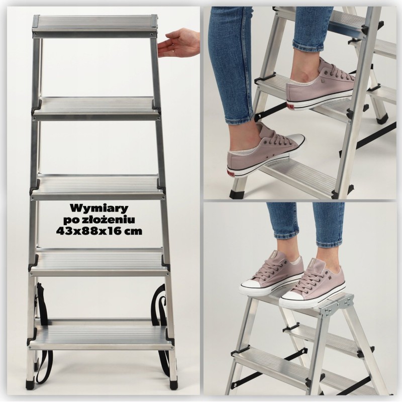 Suchen Sie eine kleine Leiter für alltägliche Hausarbeiten? Eine stabile Leiter mit einer bequemen Plattform, die Sicherheit bei der Benutzung garantiert? Das trifft genau zu, denn unsere doppelseitige Haushaltsleiter ist ein hochwertiges Produkt, das sich für Arbeiten in geringen Höhen eignet.